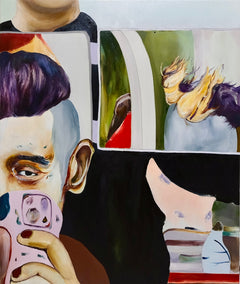 美容室で髪の毛を切られていた時に鏡に映った自分をスマホで撮影した写真をモチーフに描いた作品